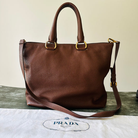 Prada Vitello Daino Satchel Bag in Brown Leather