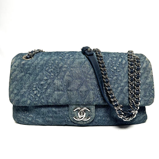 Sold outChanel Denim Camilia Single Flap Bag