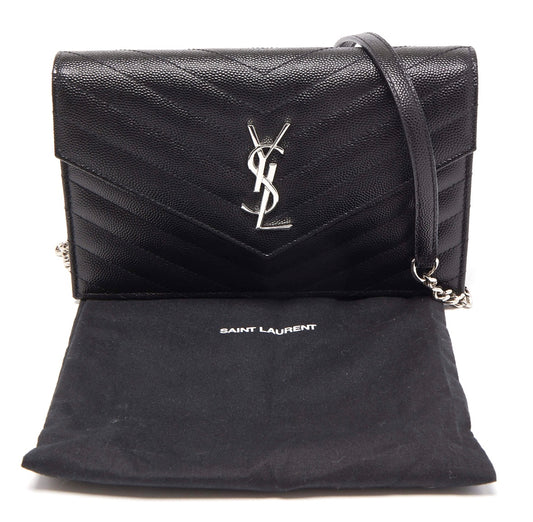 Saint Laurent Black Leather Cassandre Chain Clutch