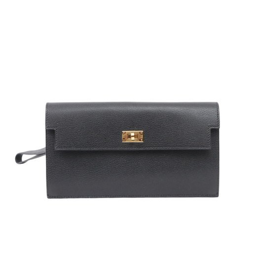 Hermes Kelly Pocket Longue Wallet in Black Chevre Chamkila Leather