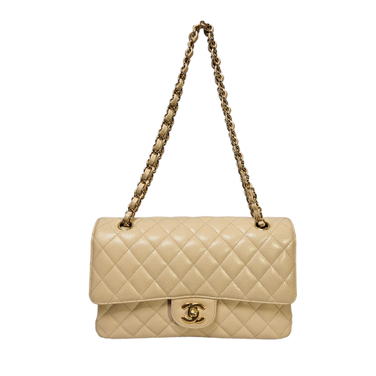 Chanel Classic Medium Double Flap Bag in Beige Caviar Leather