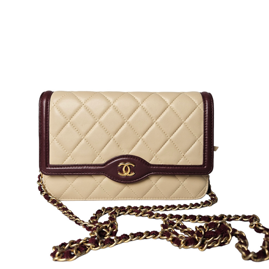 Chanel Beige/Burgundy Classic Wallet on Chain