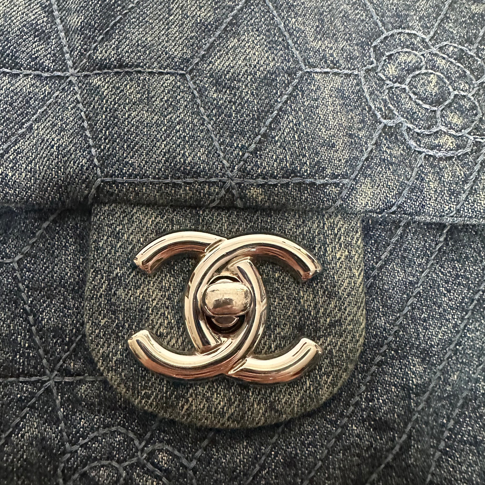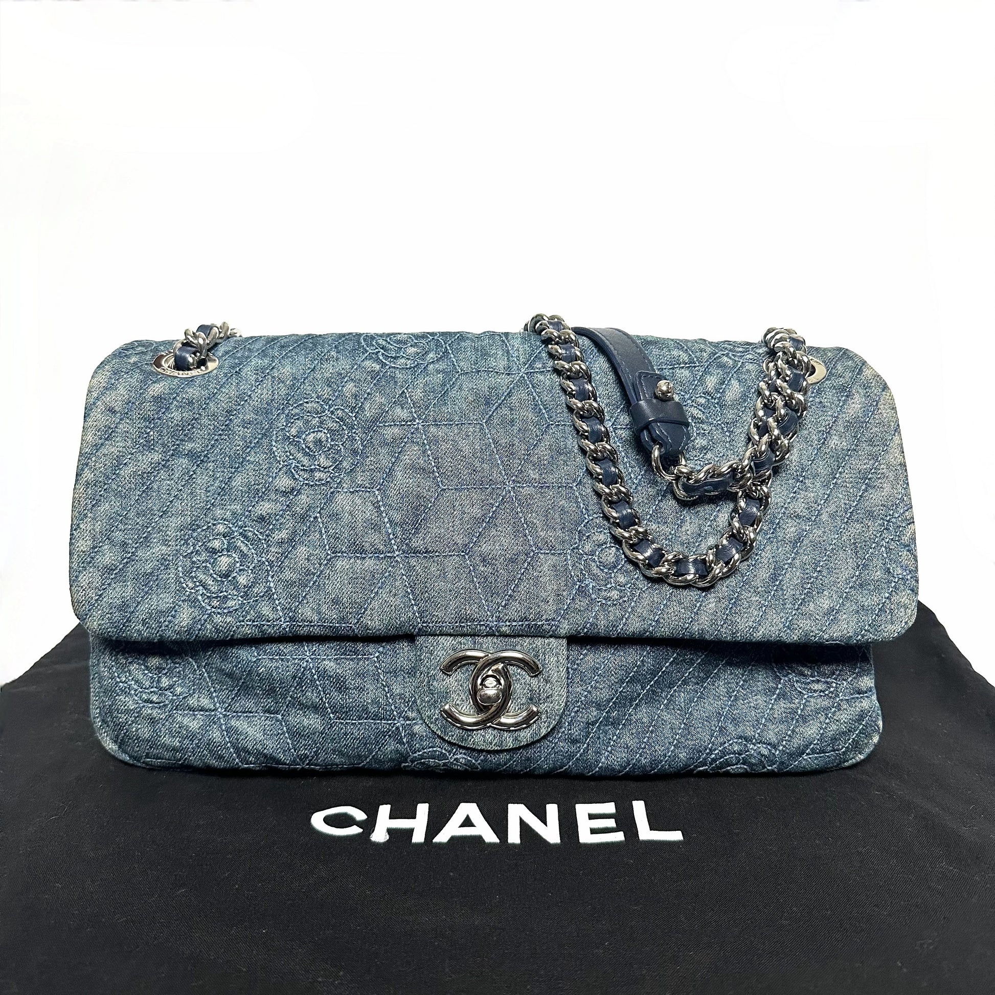 Chanel Denim Camilia Single Flap Bag