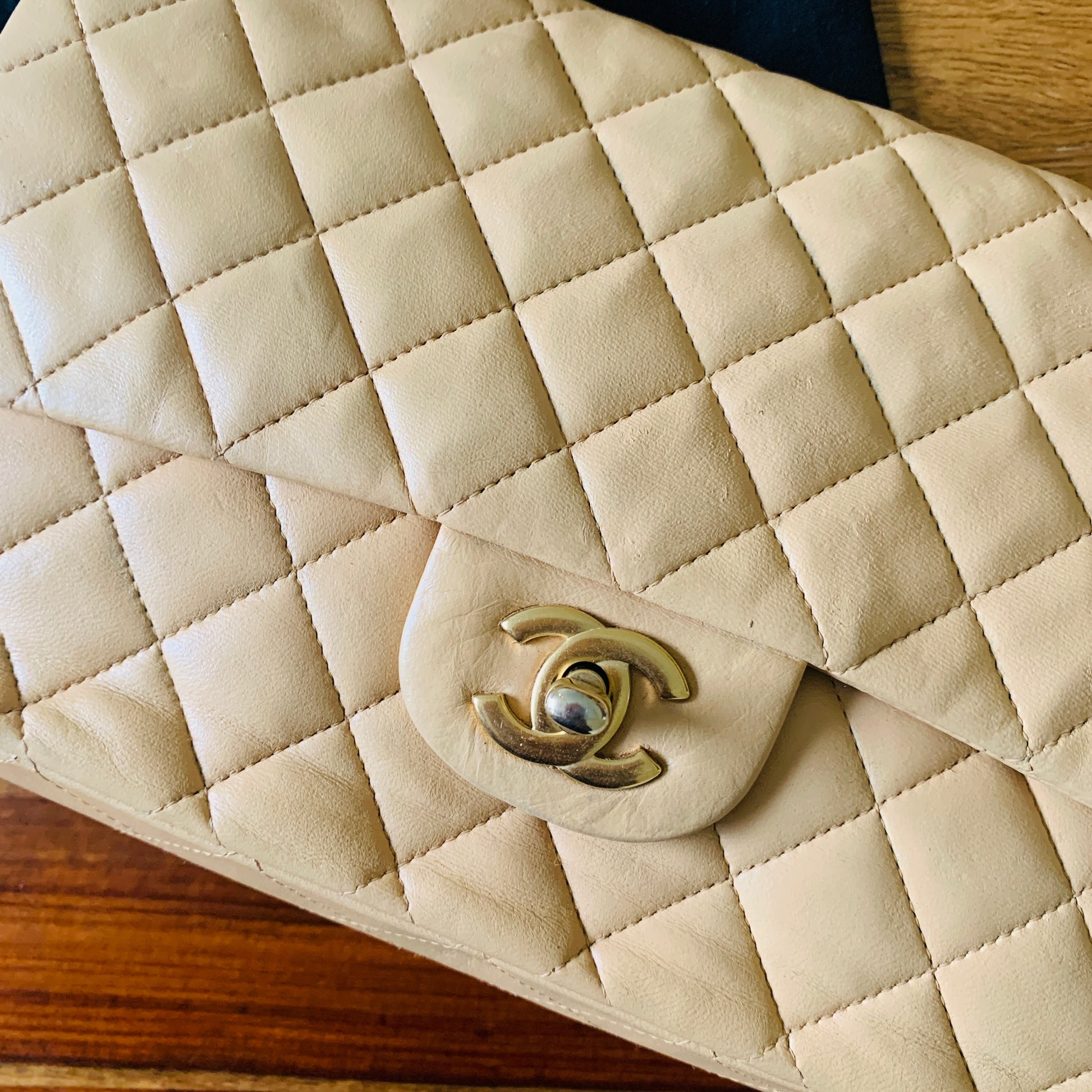 Chanel Medium Classic Double Flap Beige Shoulder Bag